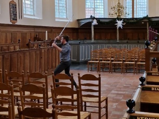 In de Raadzaal van het voormalige stadhuis van Sloten (nu dus Museum Sloten) hangen sinds jaar en dag twee tweehandszwaarden. We wisten dat er in totaal twaalf van die zwaarden waren. Van die zwaarden lagen er to voor kort twee op zolder van het meseum, en acht nog op de zolder van het oude raadhuis van Balk dat dienstdeed als depot van Museum Sloten. Maar we wisten niet hoe bijzonder dat was: zijn ze werkelijk gebruikt, en hoe werd er dan mee gevochten, en tegen wie?