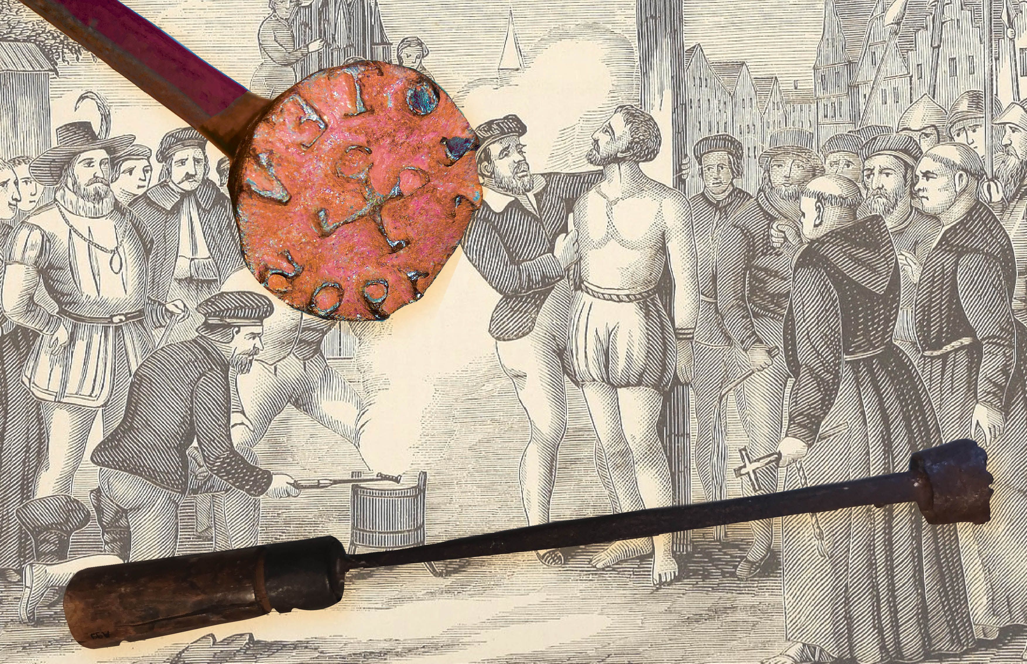 We hebben in het museum ook het brandmerk van de stad. Gebrandmerkt zijn was eigenlijke een permanemente schandstraf: je was immers voor altijd herkenbaar als misdadiger. Een brandmerk was dan ook bedoeld als waarschuwing: iedereen kon meteen zien dat je ooit ergens voor gestraft was. Men was dus gewaarschuwd! Op de afbeelding het brandmerk van Sloten, met in spiegelbeeld de tekst ‘Sloten 1605. En verder twee gekruiste sleutels, die nog in het wapen van de stad (en in het logo van het museum).