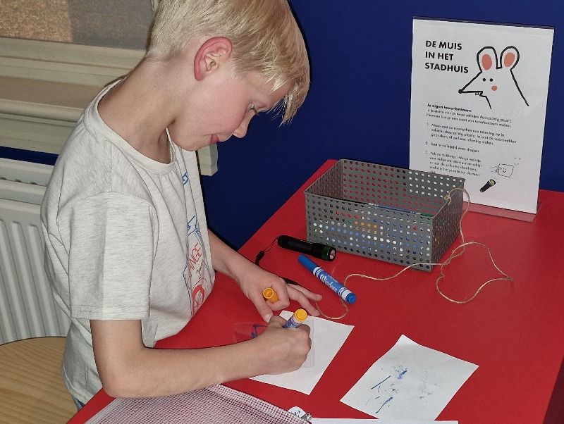 In de zaal met toverlantaarns laat Wick zien hoe je zelf een tekening op glas kunt maken en op de muur kunt toveren. (Die tekening mag je oaok meenemen en voor je raam hangen.)